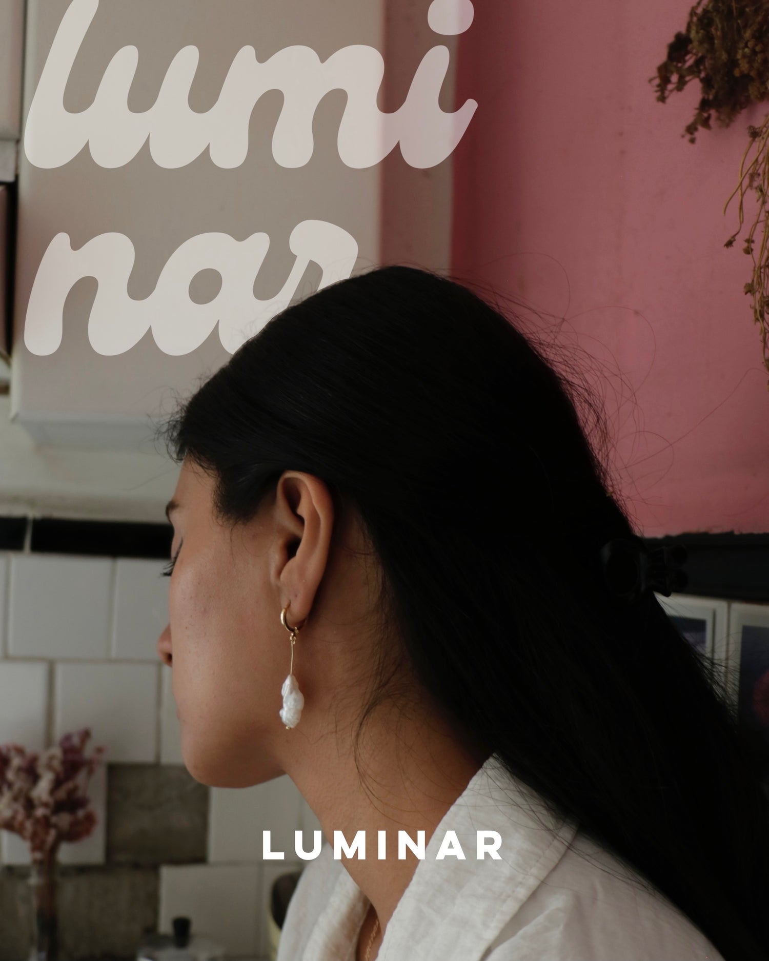 Brizna es algo chiquitito, un algo diminuto. Estos aretes están hechos de las perlas más diminutas que encontramos; es una pieza en la que a partir de estas briznas de perla creamos una cosa nueva, fina y bella. Nuestro ser también es así, una serie de cosas finas — pequeños gustos, ideas y sustos — que nos hacen lo que somos.