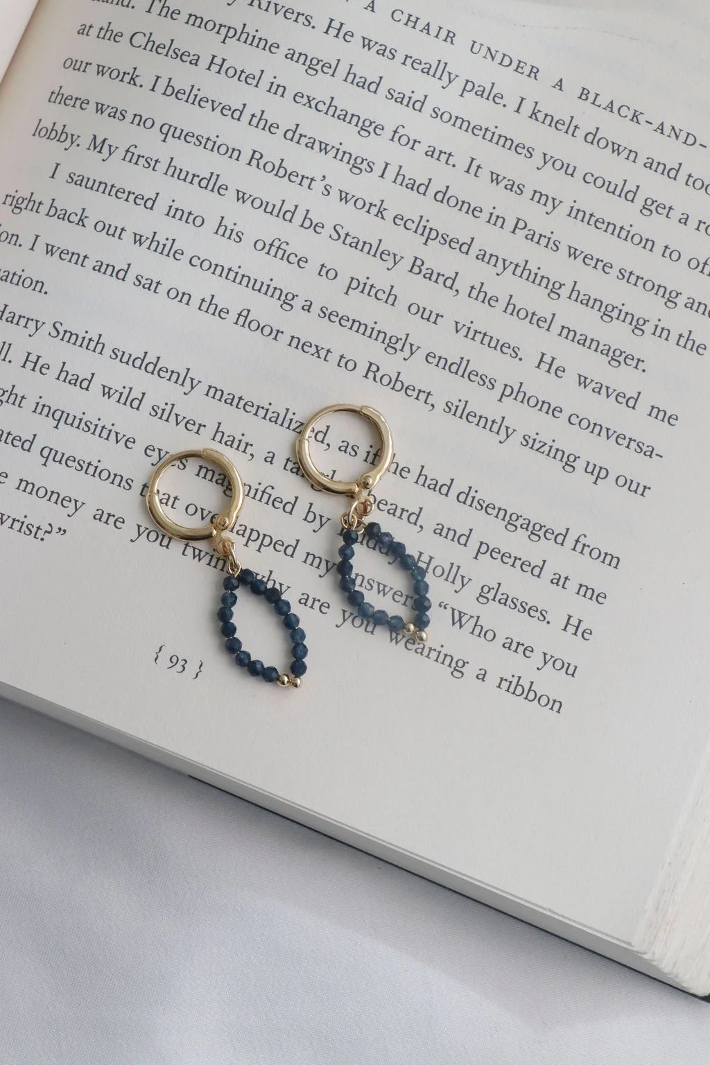 Aretes elaborados a base de chapa de oro y piedra lapislázuli.