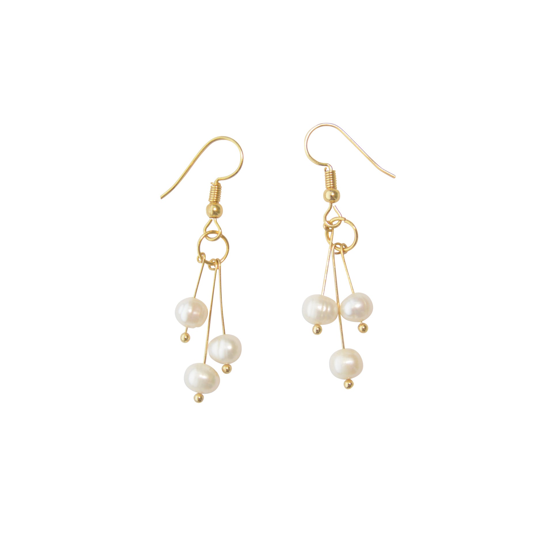 Aretes colgantes de 3 perlas en gancho chapado en oro de 14K y engarces o plata 9.25