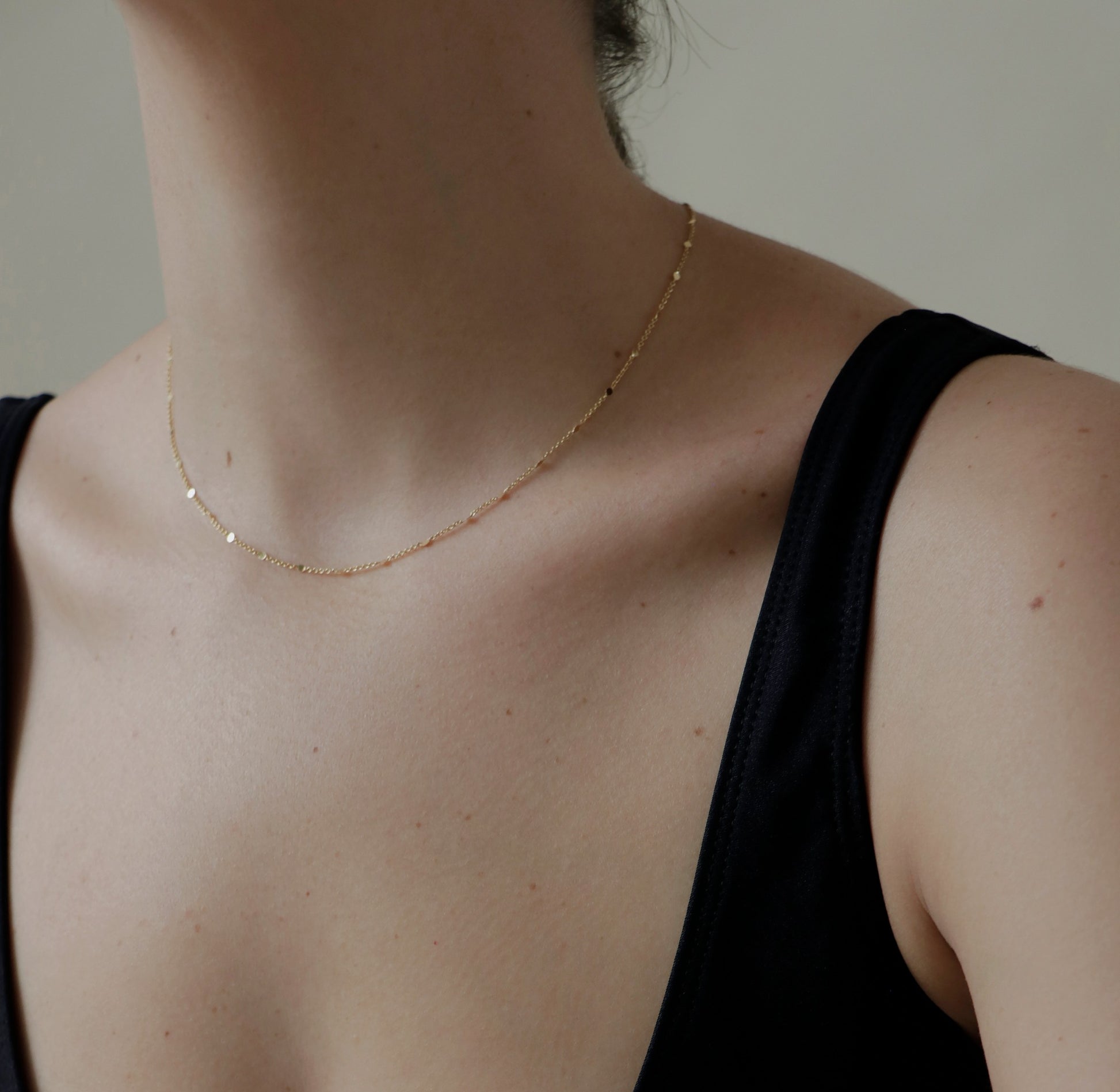 Cadena con puntitos de baño de oro de 14k.