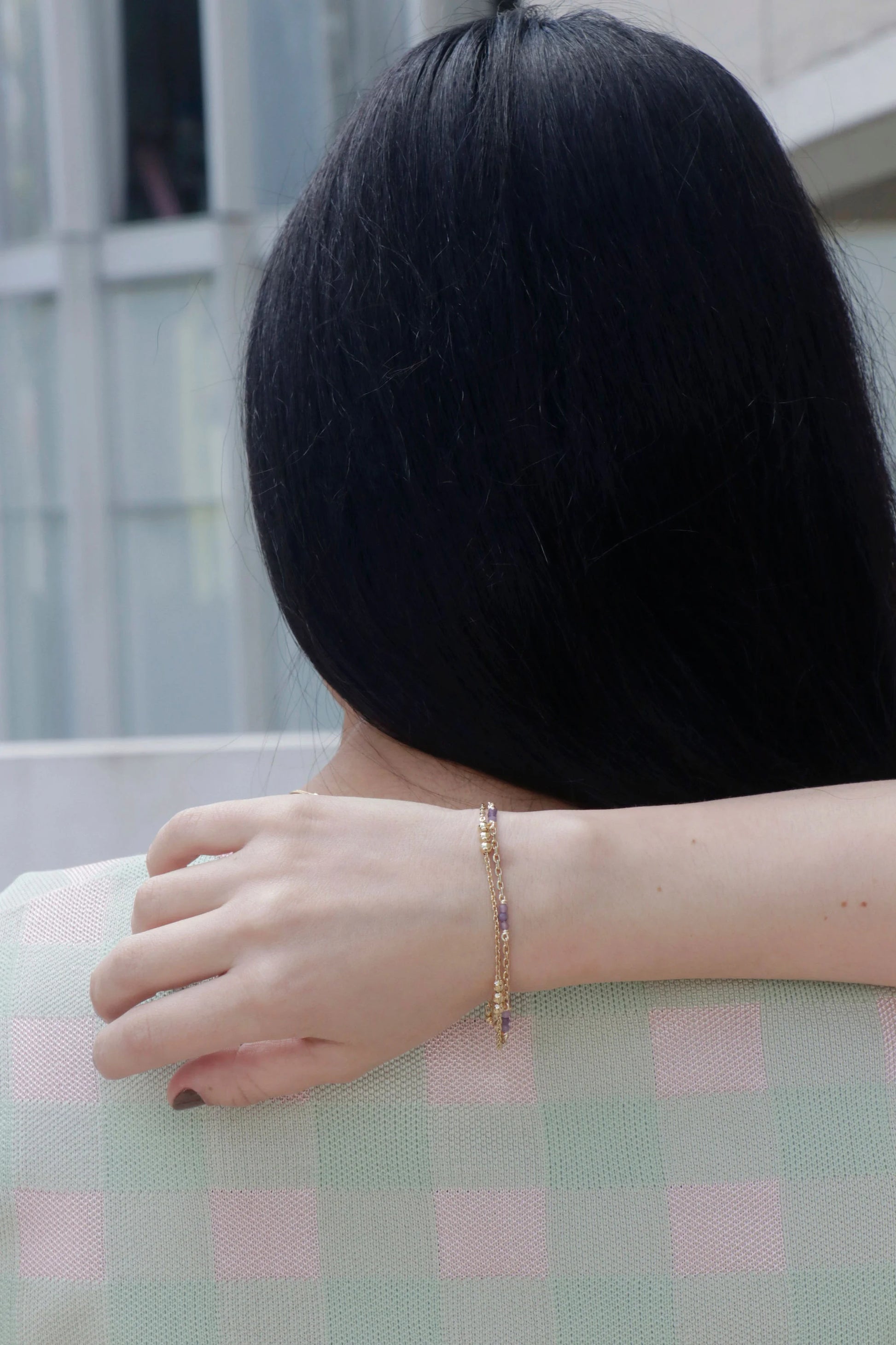 Pulsera elaborada a base de chapa de oro y piedra lodolita.